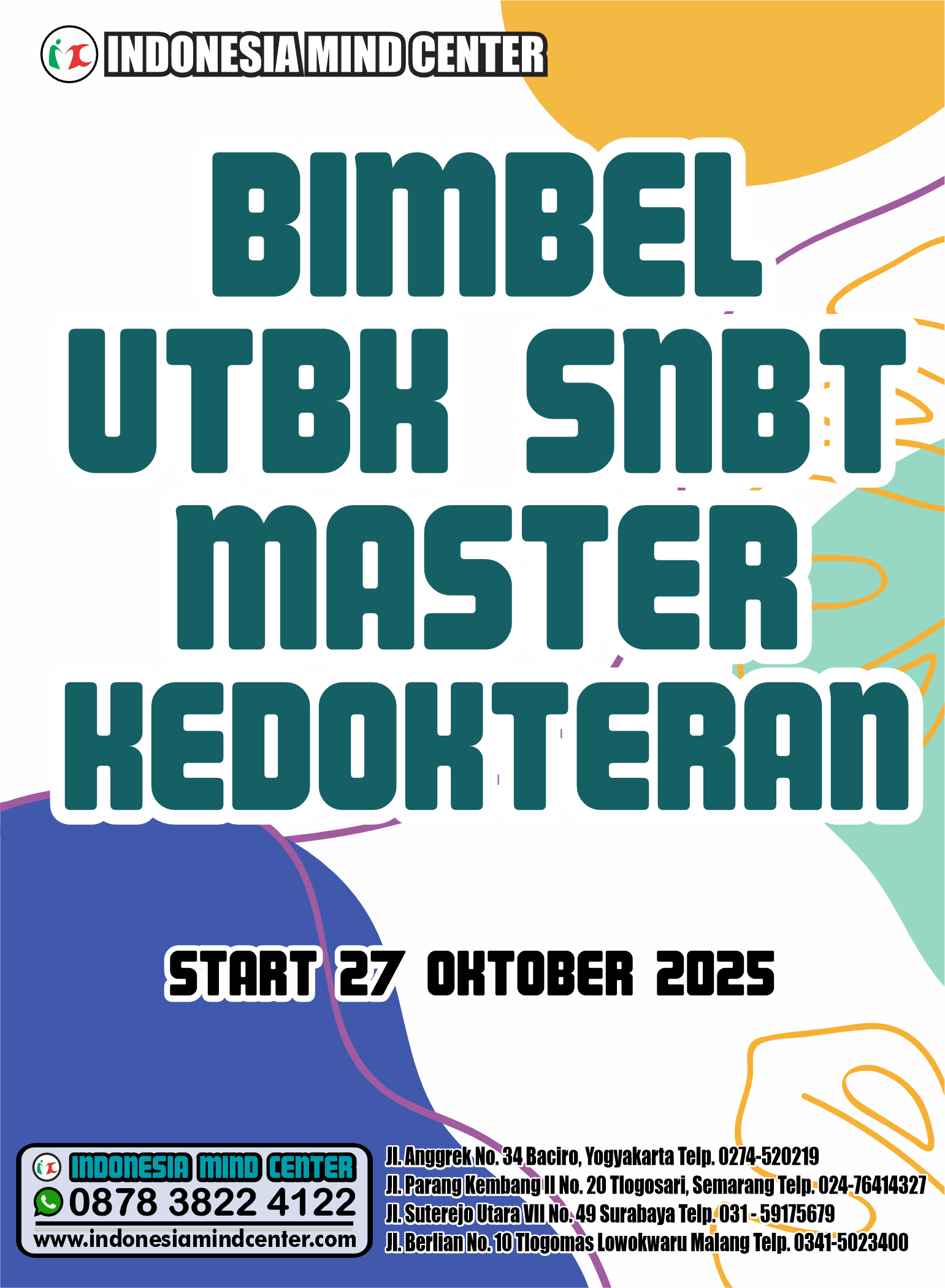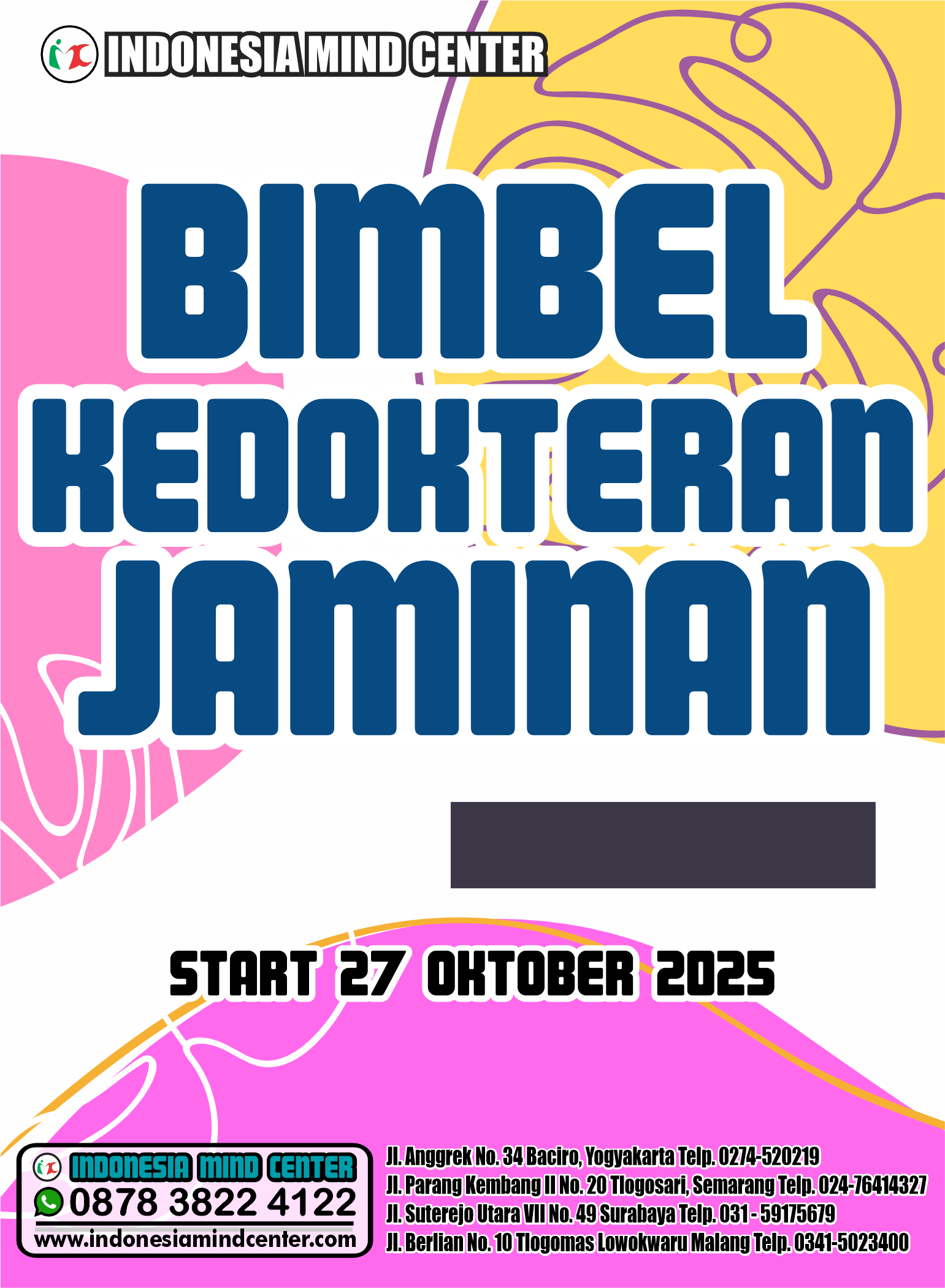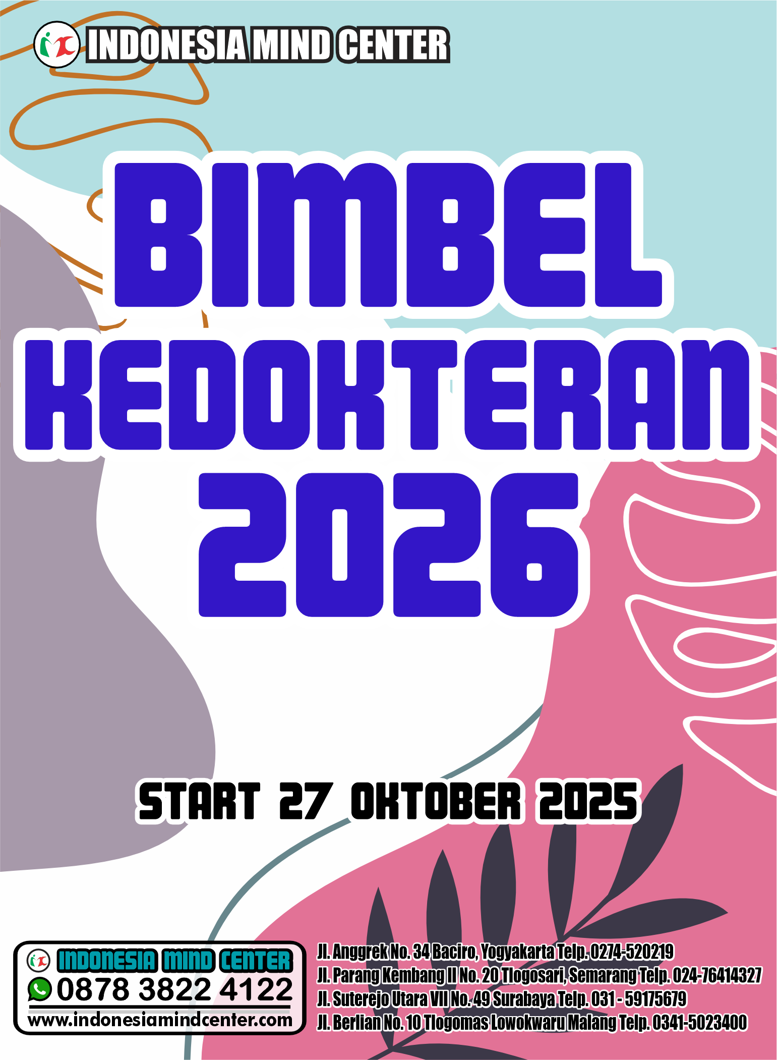 Kami LPBB INDONESIA MIND CENTER yang setiap tahun selalu mampu mengantarkan adik adik meraih kedokteran impian telah membuka pendaftaran. Dengan pengajar Dosen, s2, Master skolastik, Master tpa, juara akademik, juara olimpiade, serta praktisi senior siap membantu, mengarahkan, adik adik dalam belajar.