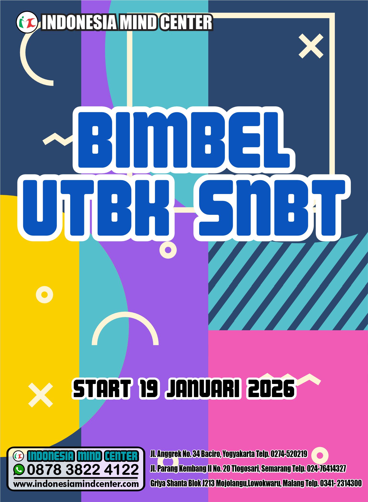 bimbel imc sudah menyiapkan semua. Dengan metode belajar SIMPLE CERDAS PENALARAN tidak hanya mampu menyelesaikan soal soal dengan cara tercepat, namun juga mengasah otak kanan dan kiri secara seimbang. selain itu siswa juga diajarkan penerapan belajar disiplin yang tinggi. serta tetap menjunjung tinggi nilai ketuhanan yang maha esa.